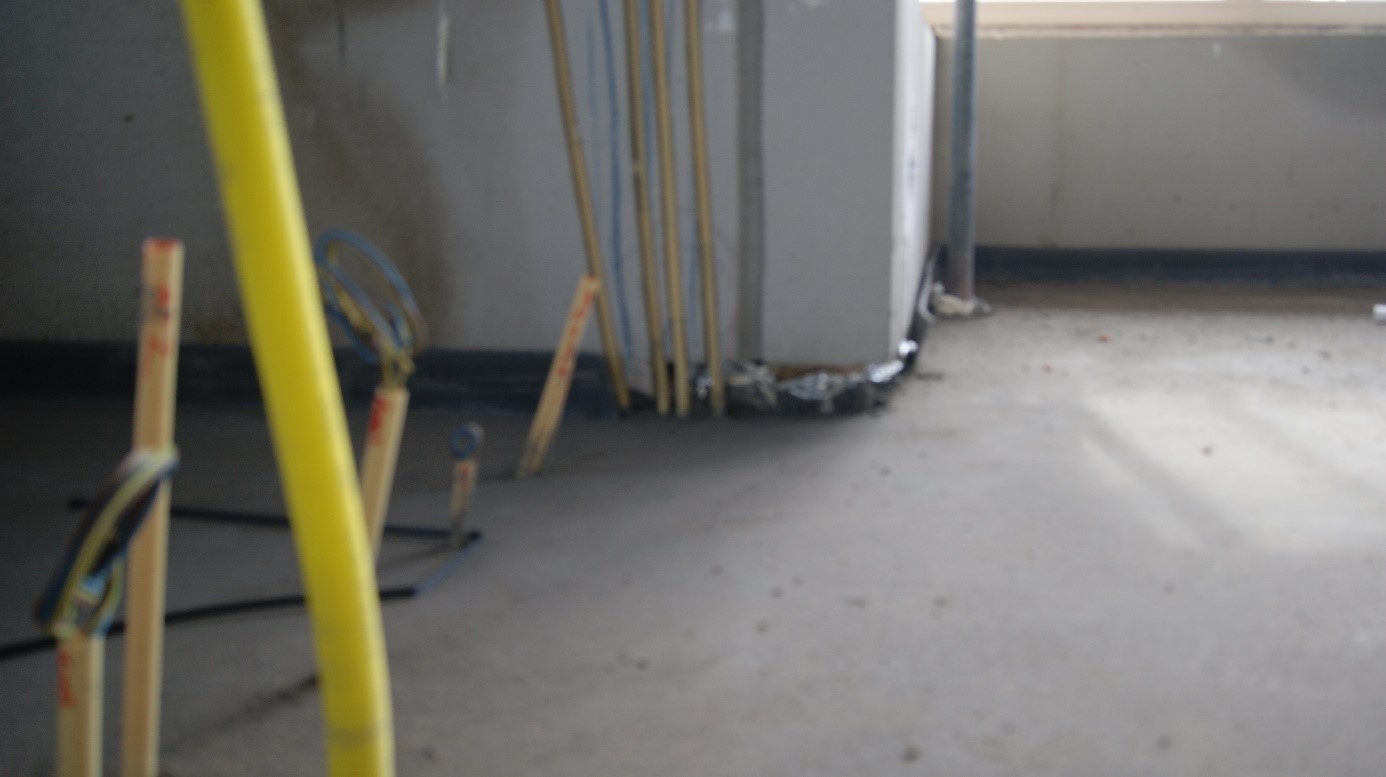 Sparingen in een binnenwand ten behoeve van elektraleidingen dienen nog dichtgezet te worden. Ze vormen een kwetsbaar punt aan de rand bij de vloeroplegging. Dit kan leiden tot scheurvorming of afschilferen van het vulmiddel.